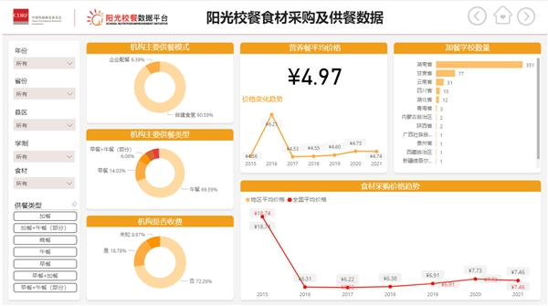 图为“阳光校餐”食材采购及供餐数据可视化分析