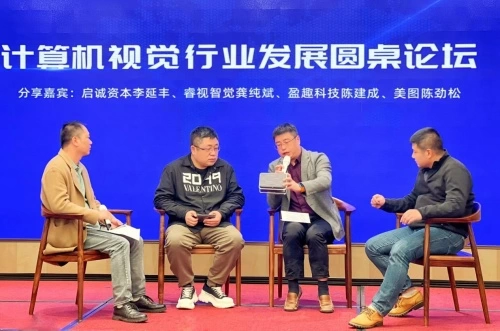 “计算机视觉行业发展圆桌论坛”环节,美图公司高级法务总监陈劲松,启诚资本合伙人李延丰,睿视智觉CEO、联合创始人龚纯斌,盈趣科技总裁助理兼技术战略总工陈建成,就计算机视觉领域的相关热点话题展开讨论,共同探讨行业发展机遇,为联盟下一步发展献计献策。