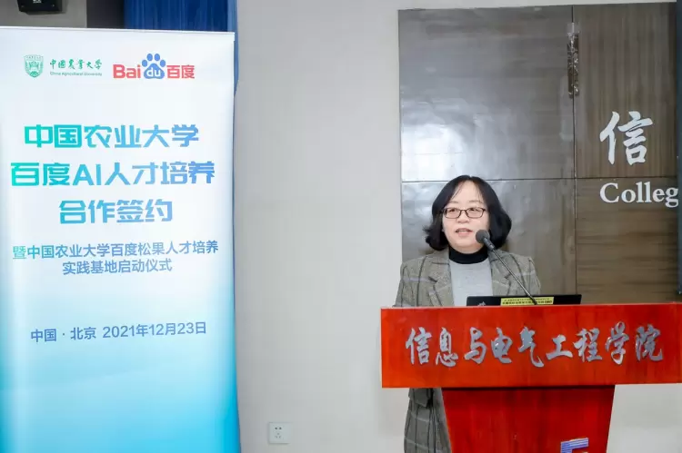 张漫在致辞中提到:“智慧农业是新一代信息技术,与传统农业生物系统深度融合,是现代农业的制高点。对于智慧农业的关键技术,我们总结成五个字叫感、移、云、大、智,即感知、移动互联、云计算、大数据、智慧与智能装备。”同时,对于此次与百度的AI人才培养合作,张漫表示,“AI+农业人才培养意义重大。AI等新一代信息技术赋能传统农业,在智慧种植、智慧养殖、智能农机装备、智慧能源等领域,具有广阔的应用前景,为农业插上智慧的翅膀。百度公司是拥有强大互联网基础的AI领先企业,相信我们和百度公司携手建立人工智能人才培养的实践基地,将会促进我院在人才培养科学研究的工作,不断提升本科生、研究生在AI领域的实践动手能力和科研创新能力。”