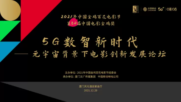 12月28日,2021年中国金鸡百花电影节主论坛活动“5G数智新时代—元宇宙背景下电影创新发展论坛”将在厦门天元酒店举行。作为本届中国电影金鸡奖的主论坛,由2021年中国金鸡百花电影节组委会主办,中国移动咪咕公司、厦门文广传媒集团承办。论坛旨在携手电影制作、发行等相关行业的翘楚代表,共同探讨在5G数智新时代以及元宇宙背景下电影产业如何创新发展。