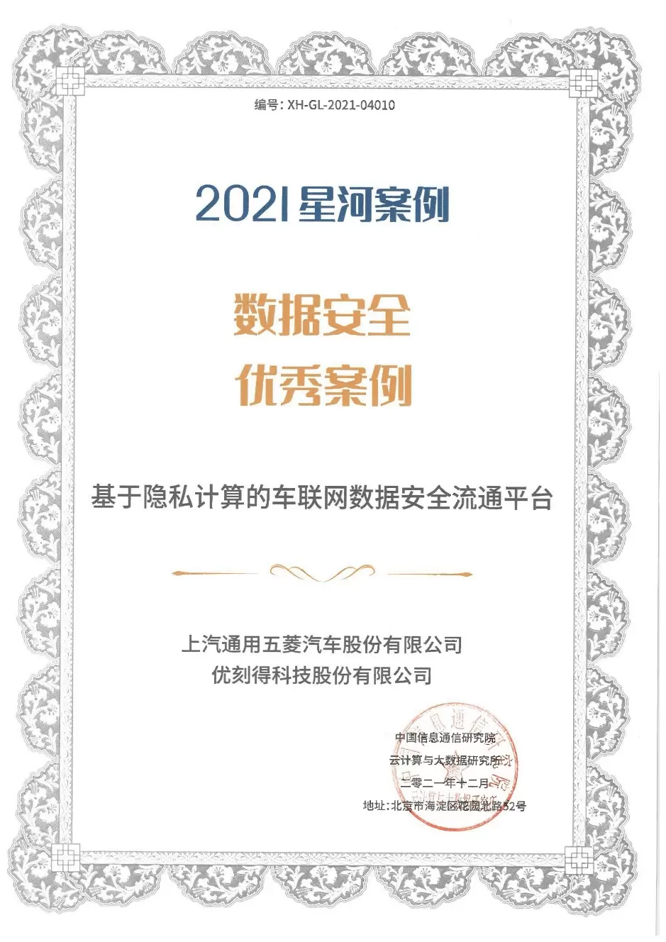 UCloud优刻得隐私计算车联网数据安全流通平台入选2021年“星河奖”优秀案例