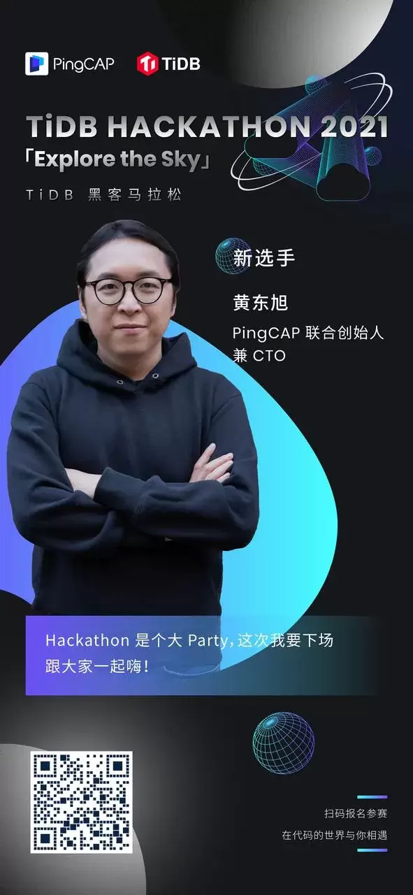 第一位选手你肯定想不到,他就是 PingCAP 联合创始人兼 CTO 黄东旭,作为多界评委的他,终于忍不住手痒,要亲自下场参加比赛。参加今年 TiDB Hackathon 的小伙伴们可以和东旭同场竞技,一决高下啦!