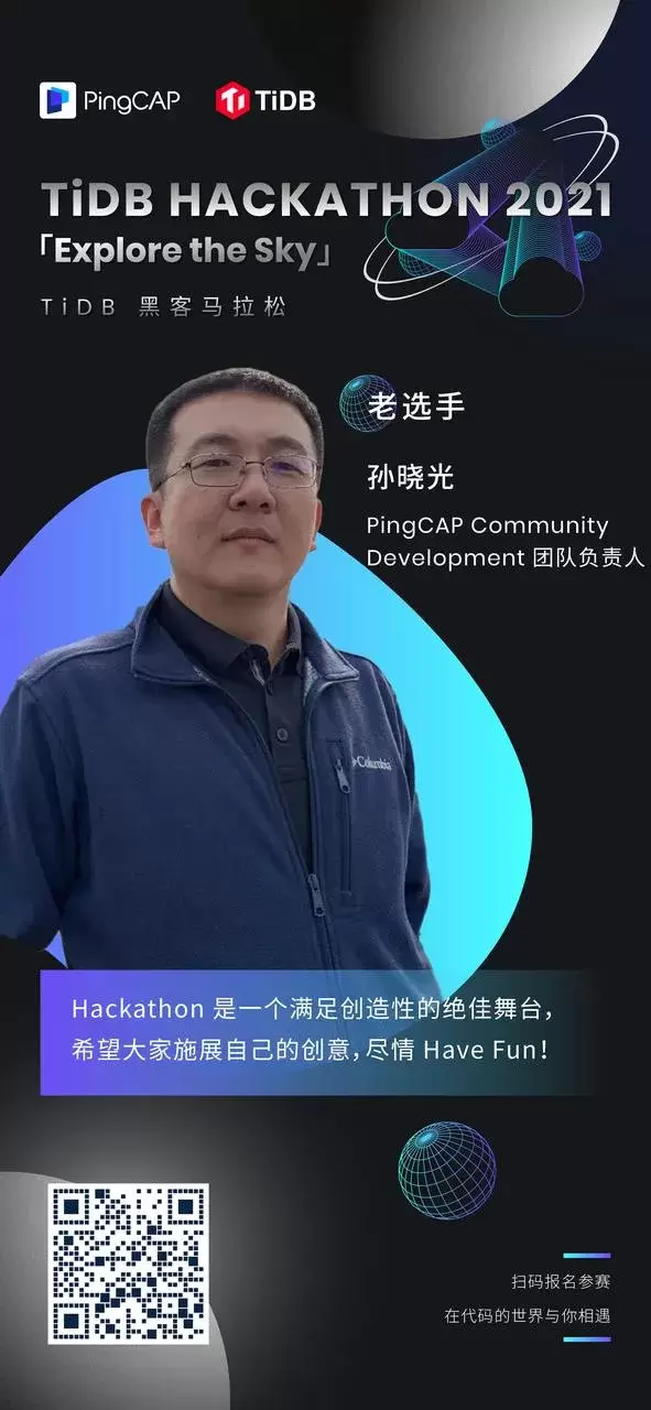 除了东旭,今年还有一位三届老选手—— PingCAP Community Development 团队负责人 孙晓光,他正在犹豫要不要参赛。