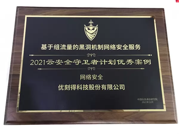 2021年12月28日,在中国信息通信研究院主办的“2021可信云安全论坛”上,UCloud优刻得“基于组流量的黑洞机制网络安全服务”获得2021云安全守卫者计划优秀案例。