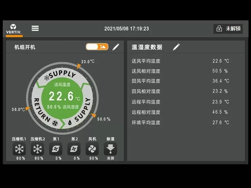 相比较于水冷系统的高耗水量、高复杂性,维谛技术(Vertiv)的风冷方案不仅耗水量为0,而且结构更加简单,通过控制系统能够实现对变频风机、变频压缩机等几大核心部件的完全控制。