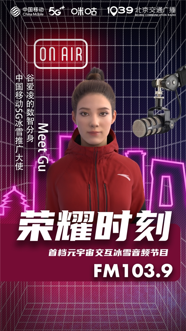 据悉,该节目除1039金牌主持人团队外,还邀请了中国移动5G冰雪数智达人Meet Gu担任DJ,成为首位做客电台直播间的数智达人。双方在节目中一起趣聊冰雪故事,科普冰雪知识,揭秘冰雪运动背后那些令人难忘的荣耀时刻。