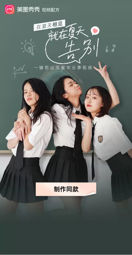 以往的离愁别绪都要被修图的时间占据,毕业主题的“美图配方”,让大家能把时间更多地留给彼此。