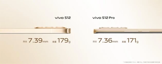 影像之外,vivo S12系列也延续对设计质感的追求,颜值和手感更加出色。vivo S12拥有7.39mm的超薄机身,一体式航空铝直边中框,重量仅为179g,温柔又不失精致。vivo S12Pro采用了前后双曲面的机身设计,整机仅重171克,薄至7.36mm,手感同样出色。