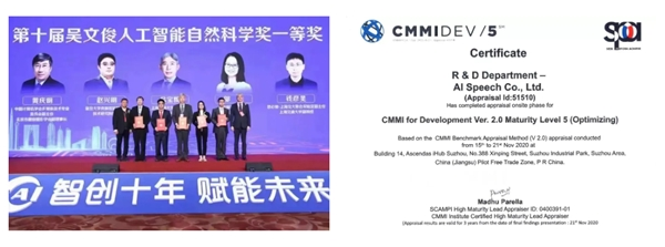 思必驰团队的“鲁棒语音信号模式分析与识别的深度结构化建模理论与方法”,荣获2020年度第十届吴文俊人工智能科学技术奖“人工智能自然科学奖一等奖”。同时,思必驰通过CMMI-DEV V2.0 ML5级评估,获得国际标准认可。