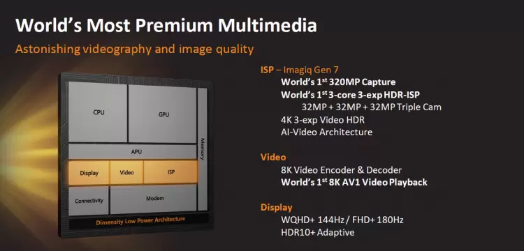 天玑9000内置性能强大的Imagiq 790 ISP,支持8K视频拍摄等先进影像技术