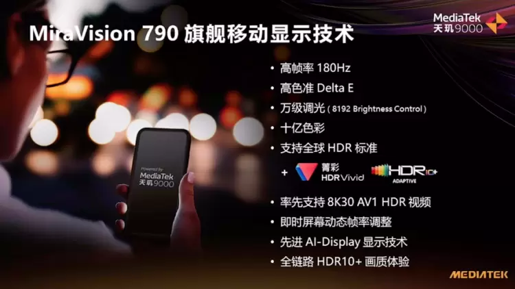 天玑9000 MiraVision 790旗舰移动显示技术,率先支持8K30 AV1 HDR视频播放