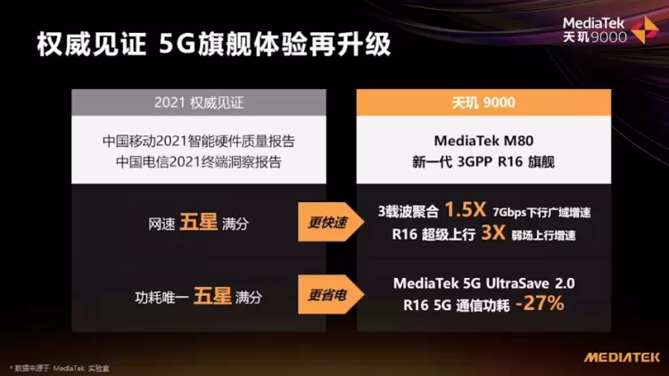 天玑9000支持5G UltraSave 2.0省电技术,5G通信功耗可降低27%