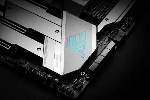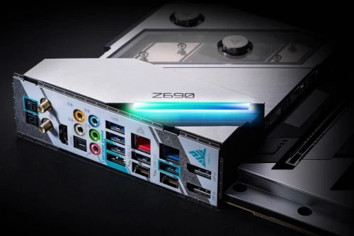 这一次,我们大胆地透过不同的不锈钢金属表面处理技术,层层交迭搭配,辅以位于主板正中间的彩色OLED屏幕,将Z690 AQUA的金属盔甲跳脱以往,打造出更具有科技感以及未来感的风貌。同时,我们有意的减少了RGB灯效的面积,让RGB仅作为一个画龙点睛的点缀,希望玩家可以享受Z690 AQUA纯粹的金属工艺之美。