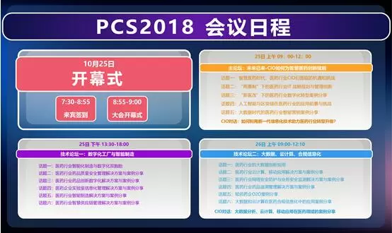 2018中国医药CIO峰会报名工作即将启动,我们期待更多的医药行业信息化负责人加入我们,如果您对信息化、数字化技术感兴趣,这将是您不可错过的交流盛会!PCS 2018隆重推出多个主题演讲、精品展位,演讲名额有限,报名从速!期待您的参会!