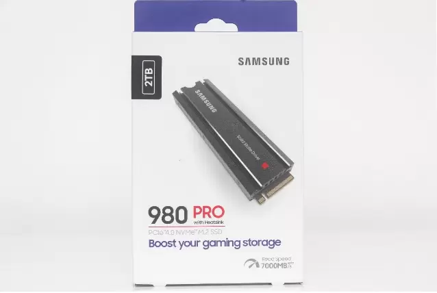 习惯了三星黑色调包装盒,第一次看到980PRO散热片版后感觉眼前一亮:这个配色跟索尼PS5外包装简直太像了。在某种意义上来说,980PRO散热片版就是因PS5的M.2 SSD扩展而生,当然它也同样适用于台式电脑以及一些高端游戏本。