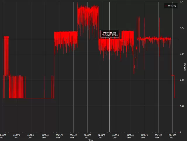 HDTune文件读取过程,在SLC缓存内功耗约为5.17瓦: