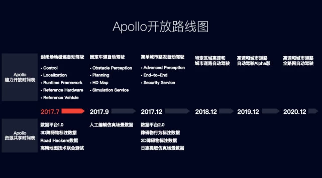 在7月5日的演讲中,陆奇兴奋的对外宣布Apollo1.0版本已经推出,这一版本开放了封闭场地的循迹自动驾驶能力,同时开放了自定位能力和端到端等数据。