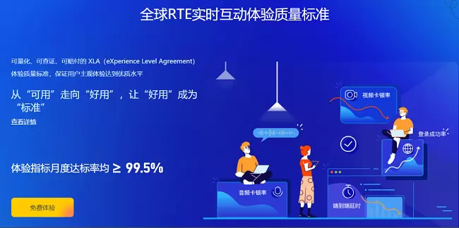 前面我们提到,SLA 是很多云厂商与电信行业对服务可用性的评判标准,但在声网看来,SLA 对设备和网络接入标准进行规范,关注的是服务的可用性。但是在 RTE 行业,仅仅达到“可用”标准远远不够,用户渴望的是清晰流畅、没有卡顿的音视频互动,那么在实时互动体验质量上就必须达到“好用”的标准。对此,声网在2020年7月设计定义并推出了实时互动行业首个体验质量标准-XLA (Experience Level Agreement),这也是为 RTE 服务的可用性与体验质量推出的首个可量化、可查证、可赔付的体验质量标准。