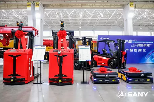 会上,三一机器人赋能离散智能制造一体化解决方案正式发布,AGV新品和3吨高压锂电平衡重叉车新品震撼亮相,以自动化程度更高、更高效的生产模式和更智能的产品,助力行业全速启航新征程。聚焦八大工艺产线的机器人系统集成,集仓储物流、下料、成型、焊接、热处理、机加、喷涂、装配八大工艺应用于一体,专注智能工厂与智能产线规划,让生产更高效,让制造更聪明;业内超长续航电动新品叉车,以燃油叉车工况为设计标准,有着媲美燃油叉车的动力性能,超越国内外相关机构检测标准行业首创三电系统五年质保,服务做到无以复加;超高精准度的AGV系列新产品,自主研发行业领先的智能调度管理系统与无人系统,可实现多路径规划、自学习任务优化,数字化远程运维平台实时远程监控设备状态,智能化运维更主动、更精准。
