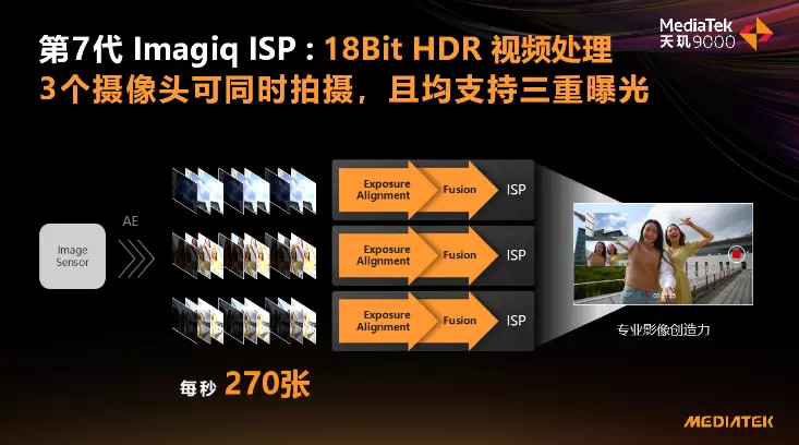 天玑9000支持18Bit HDR视频处理,且支持三摄三曝