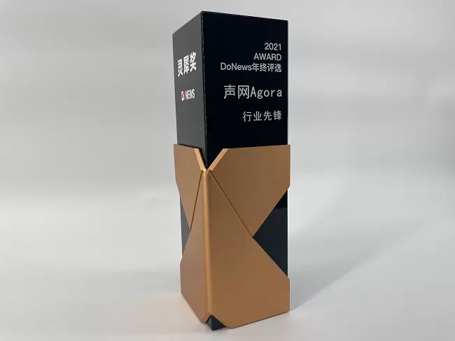 近日,DoNews公布了2021年终评选活动奖项名单,该评选活动共设有灵眸奖、灵犀奖、灵动奖三类,涵盖互联网行各个细分领域,涉及的企业和机构群体数百家。经过为期一个月的评选,声网Agora凭借在实时互动云服务领域的开创和引领地位,以及一直以来的技术实力和专业口碑,荣获2021“灵犀奖”行业先锋奖。
