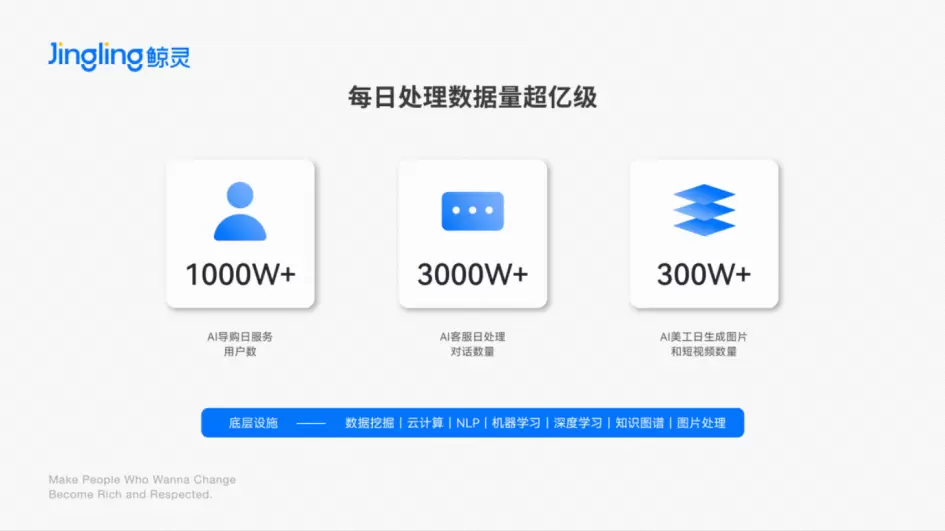 鲸灵智能作为一家具有强技术基因的私域电商SaaS服务云平台,拥有数百名技术及研发人员,团队核心人员来自于淘宝早期团队,经历过双11千亿GMV规模的考验,有丰富的电商系统研发经验。已打造出较成熟的技术能力开放平台,通过标准SaaS、开放API接口等形式实现技术输出,赋能其他私域从业者,通过S2B2C的协同闭环,实现AI技术在私域场景的落地。