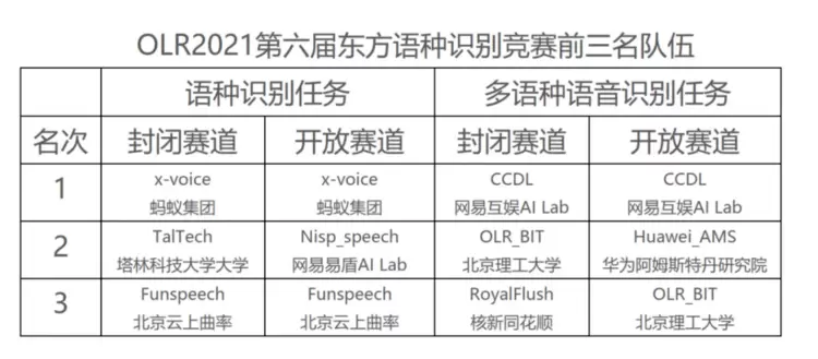 OLR2021|第六届“东方语种识别竞赛”圆满落幕,网易、蚂蚁集团同获双料冠军