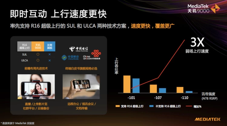天玑9000搭载M80基带,超级上行在弱场环境下最高实现300%增速