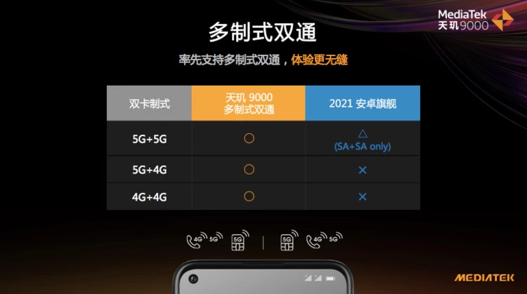 天玑9000多制式双卡双通技术,有效避免出现断网、漏接的情况