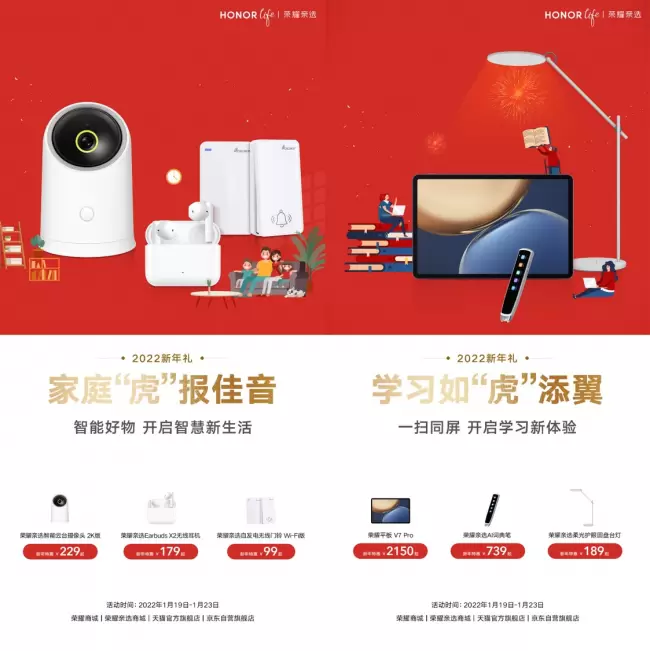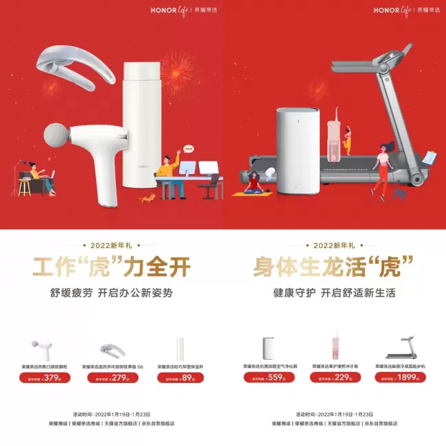 同时,荣耀亲选旗下的磁悬浮减震跑步机、柔护便携冲牙器、抗菌除荃空气净化器、AI词典笔、柔光护眼圆盘台灯、温热多向颈部按摩器G6、智能云台摄像头2K版、热敷口袋筋膜枪、轻巧抑菌保温杯多款智慧生活产品,相信凭借这些贴心、实用、有新意的礼物,一定能让亲朋好友感受到你的心意。目前,正值年货节期间,以上多款产品都推出了诚意十足的优惠,大家可以到荣耀亲选商城、荣耀商城、荣耀京东自营旗舰店、天猫荣耀官方旗舰店等平台关注了解一下。