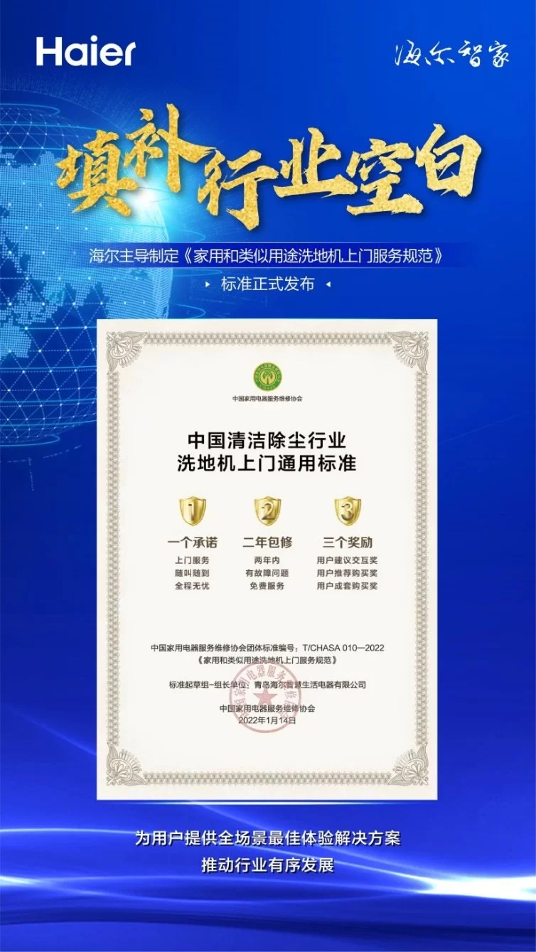 行业首个!海尔生活家电牵头的洗地机上门服务标准今发布