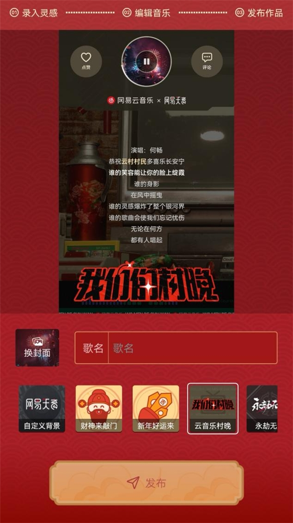在新春佳节到来之际,“网易天音”小程序在新年版本中还与即将上线的网易云音乐首届村民联欢晚会《我们的村晚》展开联动,特别加入了对“云村村民”的祝福语,同时在歌曲封面制作了复古风格的“村晚”封面,赋予“云村村民”温暖的归属感。