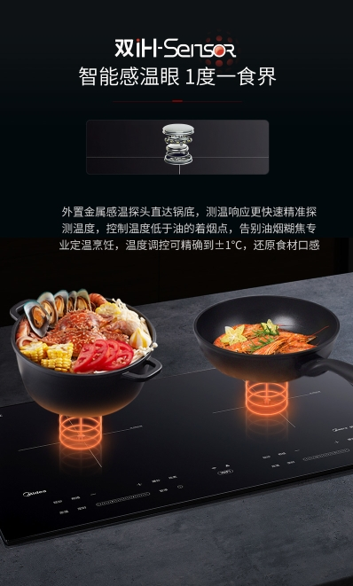多数中国家庭烹饪时,常喜欢传统明火灶台,用以煎炒烹炸。但燃烧的天然气和满屋的油烟所带来的安全隐患仍旧不可忽视;相反,电磁灶则避免了这方面的顾虑,电磁加热安全高效,相比于传统明火加热的燃气灶和集成灶,烹饪过程中不会产生明火以及一氧化碳等有害气体,并且还具备高温保护、干烧保护等技术,全方位保障烹饪者的安全。例如智能定温双灶系列的电磁灶产品,更是专为中国家庭研发,搭载智能感温技术,能够精准控制温度低于油的着烟点,不仅减少油烟产生,而且不会影响烹饪的口感,更加的健康。同时,它还支持连接美的美居APP,可以获得海量云食谱,无论是中餐、西餐,都能轻松胜任,让用户秒变大厨。