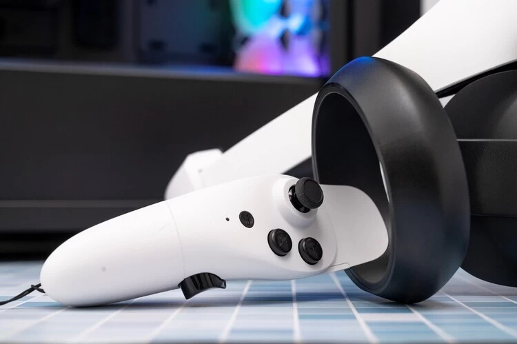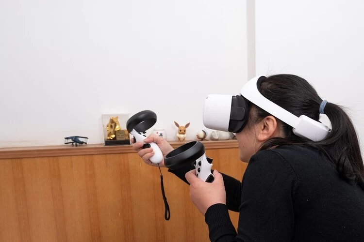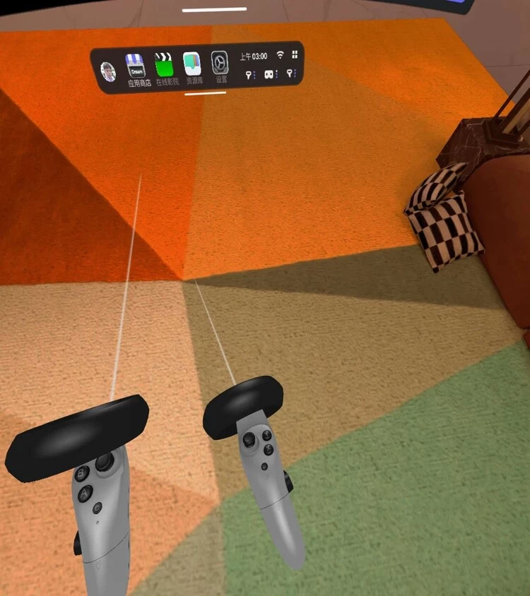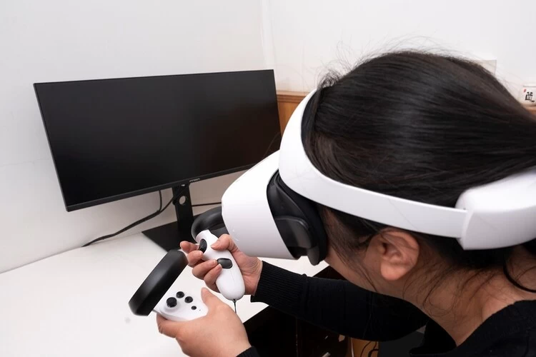 头显是接收视频信号的,而交互信号就由手柄完成。手柄的握感不错,按键的手感挺好的。无论是佩戴还是使用手柄,都基本上无门槛,内人第一次接触VR设备都能轻轻松松适应。