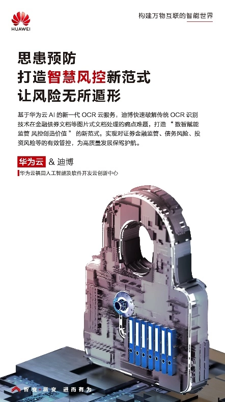 如今拥抱智能风控已经成为行业共识,在福田区政府政策的大力引导下,作为大数据智能风控细分行业领域中领先企业,深圳市迪博企业风险管理技术有限公司,通过与华为云福田人工智能及软件开发云创新中心的助力,基于华为云AI的新一代OCR云服务以较低学习成本和研发投入,在短时间内破解了传统OCR识别技术在金融债券文档处理的痛点问题,实现了先进技术与数智风控行业知识的深度融合,以及债券非结构化文本数据处理的应用场景落地。