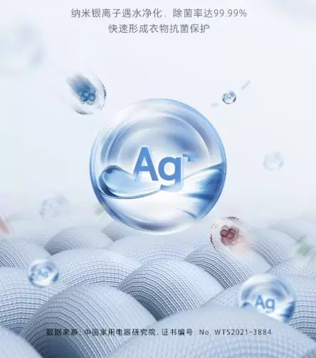 当然在考虑到衣物洗护的同时,东芝X9也充分考虑到了衣物杀菌。以往长时间未穿着的衣物往往会滋生不少的细菌和螨虫,而东芝X9洗烘一体机中加入的纳米银离子抗菌技术能够轻松应对细菌问题。Ag纳米银离子能溶于清洗水流,全方位覆盖机身和洗涤衣物,破坏细菌结构使其失去活性,达到99.9%的除菌率,灭菌的同时也能够形成长效的保护膜,真正守护全家人衣物健康。