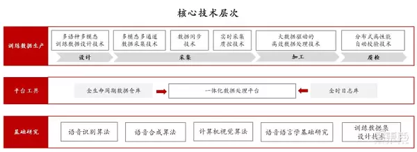 根据其IPO文件,AI数据服务的核心技术可分为三个层次:训练数据生产(包括设计、采集、加工、质检),平台工具(一体化数据处理平台)以及基础研究(语音识别、语音合成、计算机视觉、训练数据集设计技术等)。