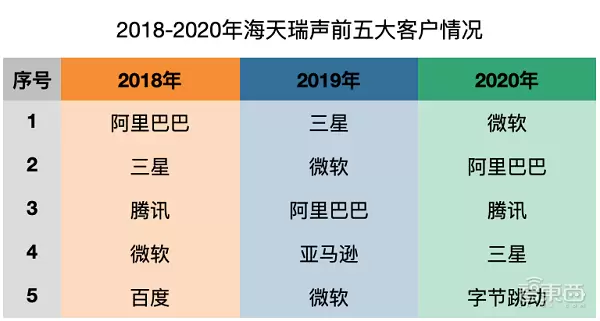 过去三年,海天瑞声的前五大客户呈现高复购率,足见其产品的高粘性。