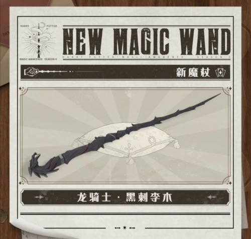 有玩家表示想要酷炫一点的法杖,官方也满足大家,比如最新的魔杖-龙骑士·黑刺李木,这次的杖身是黑刺李木木质坚硬,多刺,具有惊人的力量,适合需要经常战斗的人,而杖芯是巨怪胡须,巨怪胡须具有独特的魔法属性,虽然它的性质似乎并不是很稳定,常会给魔杖主人带来一些意外的小惊喜;千万小心,施咒过程中易燃易爆。
