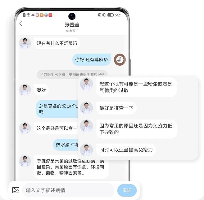 生活中按时体检可帮助我们发现身体潜在危害,及时采取应对措施。获得体检报告不是难事,难的是如何看懂报告单上的数值,以及对异常项的严重性及时了解。在尊享守护中,华为与平安医生联合为用户提供了24h医生在线问诊服务,就像好友列表里多了一位值得信赖的医生朋友,及时帮忙解读,告知我们是否需要就医,或者该去哪里就医等。