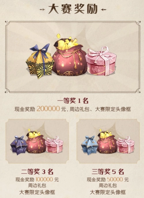 另玩家和参赛者兴奋的是哈利波特手游官方对于此次大赛的奖励金额和高度重视,仅有一名的一等奖有高达二十万的现金奖励,三名二等奖有十万元的现金奖励,五名三等奖则是五万元的现金奖励。除此之外还有十名优秀设计奖、独特风格奖、人气奖等多种方向的佼佼者各有十名,前两者一万元的现金奖励,人气奖五千元现金奖励,共计39名参赛者可获得大奖。