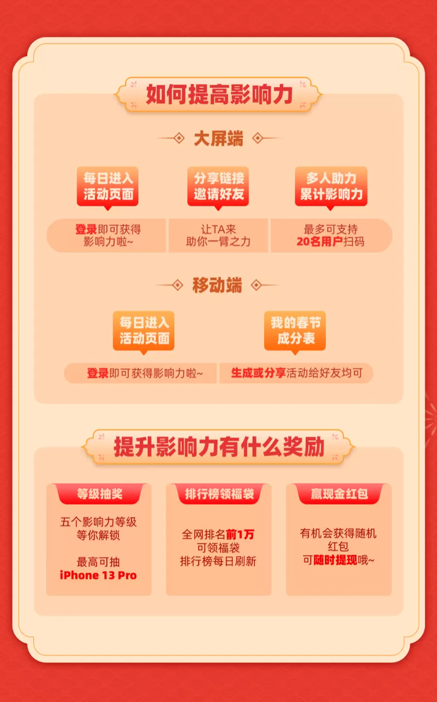 影响力分等级解锁奖品,打造竞赛乐趣,谱写“中国年”运