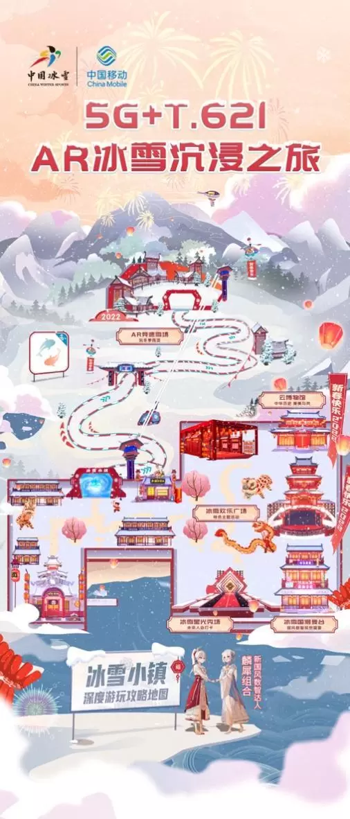 “冰雪小镇”作为元宇宙的“新手村”,中国移动咪咕围绕“国潮+冰雪视觉设计”和“沉浸式社交体验”,搭建AR竞速雪场、冰雪国潮舞台、冰雪欢乐广场、冰雪星光秀场、云博物馆五大场景,致力于打造线上国风数智世界,为用户提供独特的全场景文化体验服务。