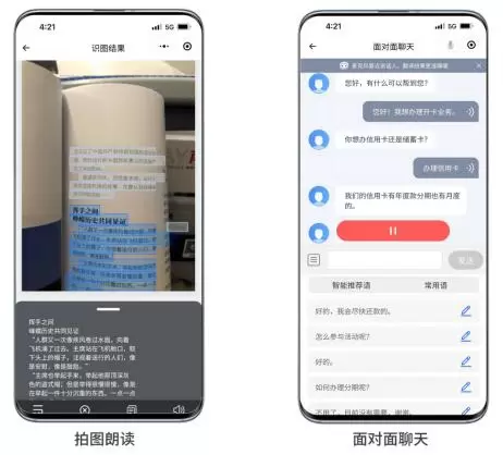 拍图朗读与面对面聊天。另外,爱听助理也是日常生活交流的小助手,支持拍图朗读、面对面聊天功能。拍图朗读可通过拍照识别课本、刊物的文本内容,扫描文字并利用声音复原实现情感朗读;面对面聊天可自动识别不同说话人,结合智能推荐回复,实现线下即时交流。