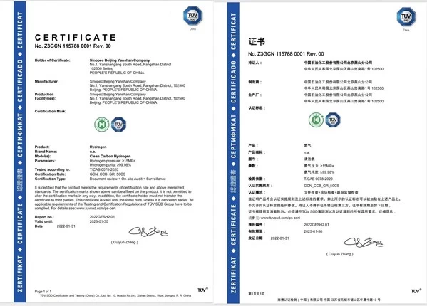TUV南德发布全国首张清洁氢证书
