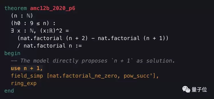 然后在解题的过程中,完全由模型直接生成了一个数学项“n+1”作为一个解:use n+1。接下来再去验证这个解是否成立。