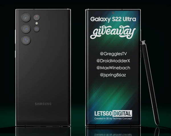 三星S22 Ultra最新渲染图出炉:超小挖孔双曲屏、自带S-Pen