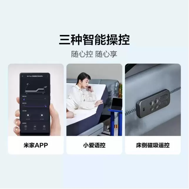 床侧磁吸遥控、米家APP、小爱音箱都能遥控。再也不用担心迷迷糊糊找不到遥控器了。