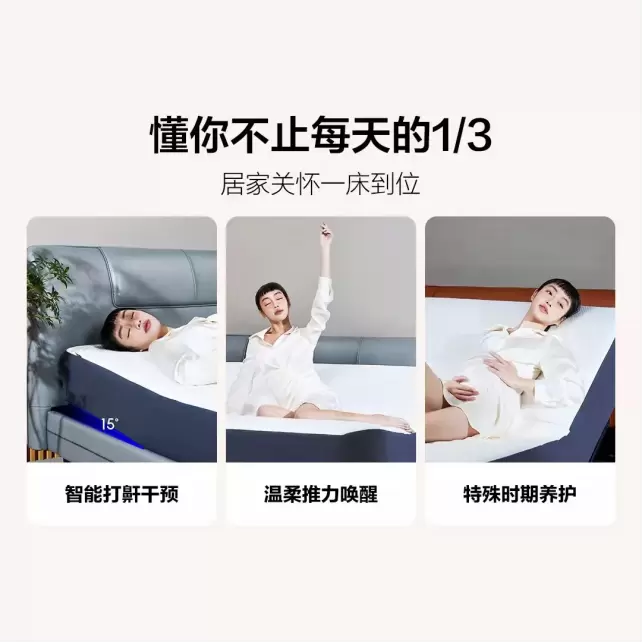 很多人受呼噜声困扰,特别是夫妻之间有一人打呼噜很影响对方睡眠质量 。这款智能电动床防打鼾模式,科学配比背部抬起一定角度,夜晚睡眠过程中,减少呼声,家庭更和谐。