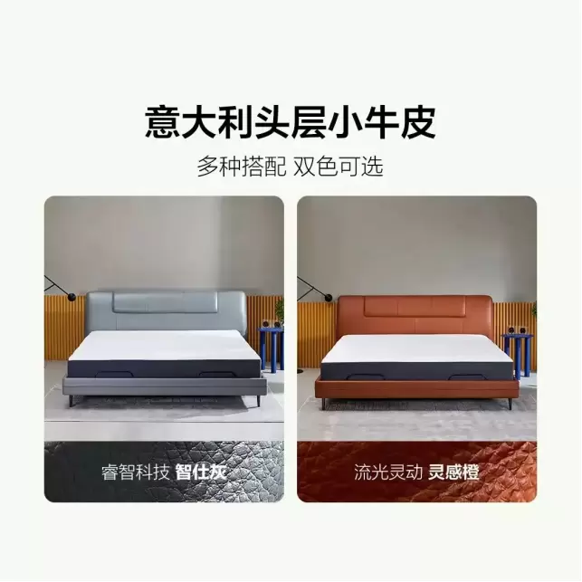 趣睡科技最新款智能电动床 8H Feel真皮智能电动床X,近期也以6899元起的价格开售,可选三种床垫搭配:零度绵床垫、弹簧护脊床垫、纯乳胶床垫。